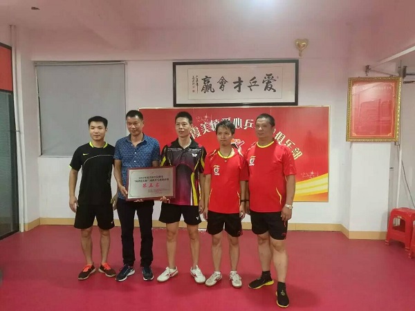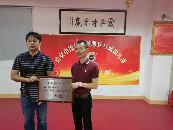 霞美镇乒协慈善基金会秘书长,霞美乒协常务理事,泉州市精诺达电子科技有限公司总经理陈文圳先生为本次赛事的第五名第六名颁奖。