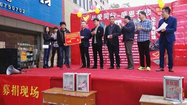 2016年3月26日,南安霞美乒协慈善基金会秘书长,南安霞美乒协常务理事,泉州市精诺达电子科技有限公司总经理陈文圳先生携手霞美乒协慈善基金会和霞美青年经济促进会成员为宋泽波进行义捐。