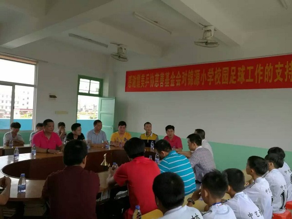 2016年6月7日,泉州市精诺达电子科技有限公司总经理,南安霞美乒协慈善基金会秘书长,南安霞美乒协常务理事陈文圳先生携手霞美乒协慈善基金会,为霞美镇锦源小学参加南安市小学生足球比赛并获得冠军的学生送上一份鼓励,在颁奖仪式上,陈总激励他们继续努力,保持好成绩!